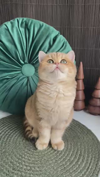 Romashka is a stunning British Shorthair female showcasing the coveted black golden tabby pattern. This breed is renowned for its robust build, plush dense coat, and calm, affectionate temperament. The black golden tabby coloring displays striking contrast with warm golden undertones against deep charcoal markings, creating a truly distinctive appearance. British Shorthairs are known for their intelligence, gentle nature, and adaptability to various living environments. Romashka combines the breed's characteristic sturdy physique with an elegant, composed demeanor, making her an excellent companion for families and individuals seeking a loyal, low-maintenance feline friend.