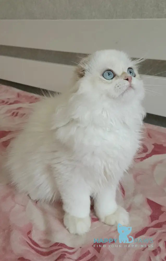 Meet Potap, an exceptional Scottish Fold male showcasing the rare black golden chinchilla pointed coloration. This distinguished feline displays the breed's signature folded ears and sturdy build, combined with a luxurious coat featuring delicate golden tipping over a deep black base. His striking pointed markings add sophisticated contrast to his appearance. Scottish Folds are known for their gentle temperament, adaptability, and affectionate nature, making them ideal companions for discerning cat enthusiasts. Potap represents premium breeding standards and would make an outstanding addition to any breeding program or as a cherished family pet.