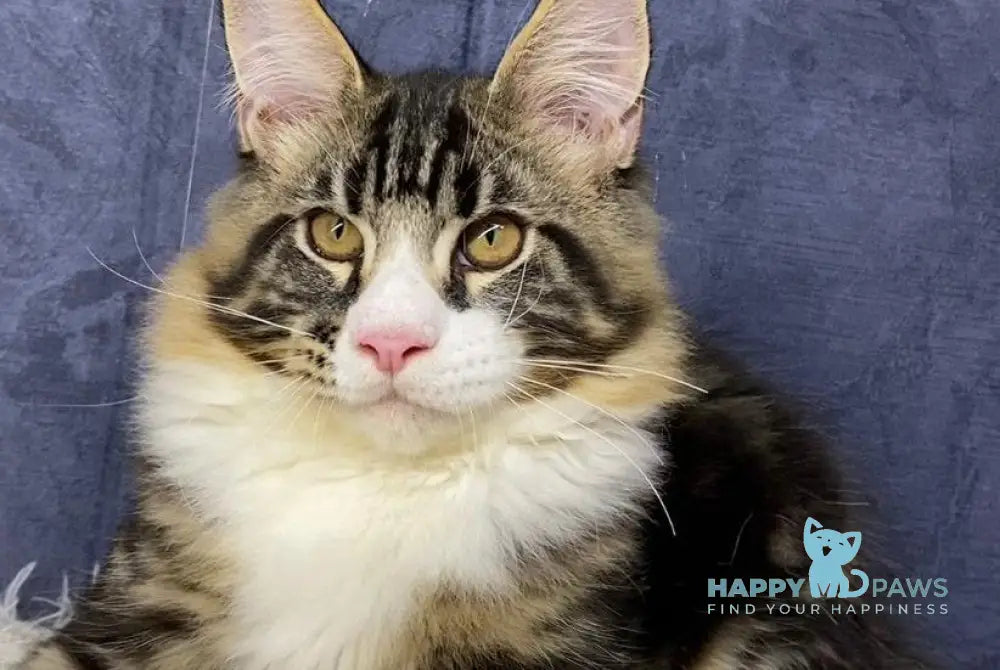 The Savo Maine Coon male in black tabby showcases the breed’s signature size and majestic appearance with a striking black-striped tabby coat. This cat features the distinctive tufted ears, prominent muzzle, and long, flowing fur typical of Maine Coons. Known for their intelligence and gentle nature, this male offers both an impressive presence and a loyal companionship, making him an excellent choice for experienced cat lovers seeking a robust and affectionate feline.