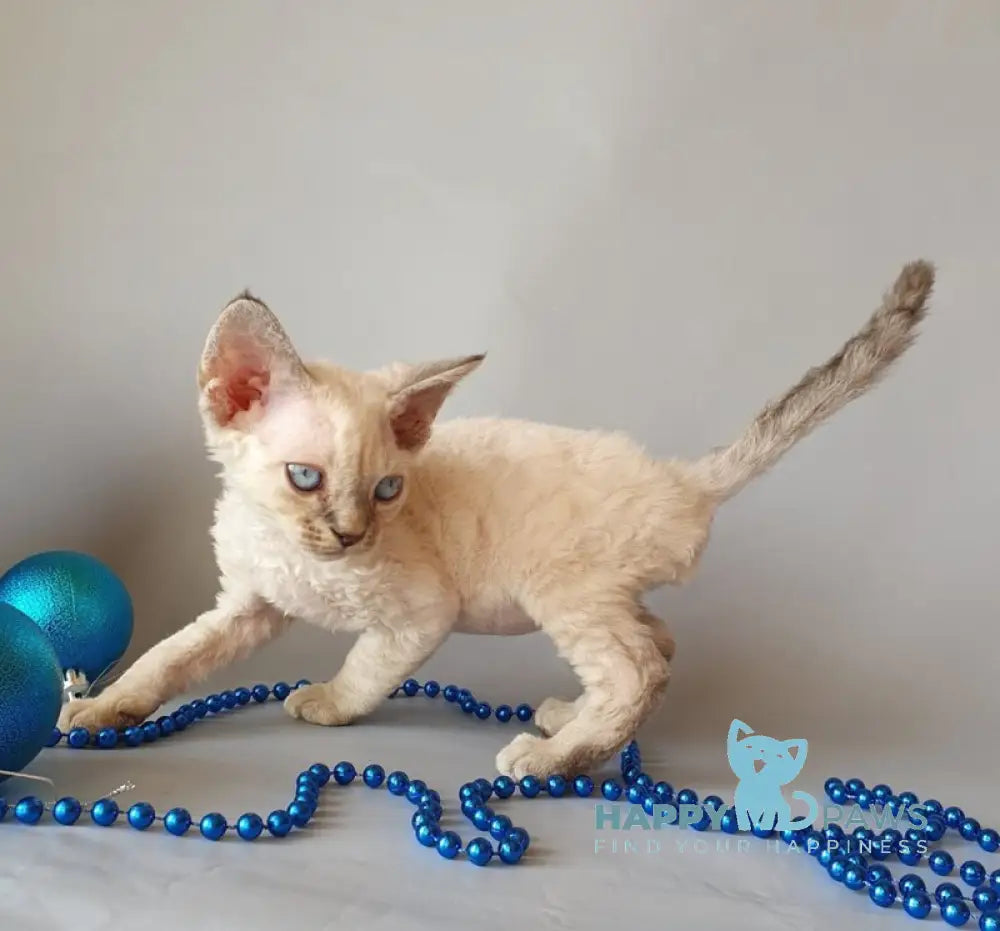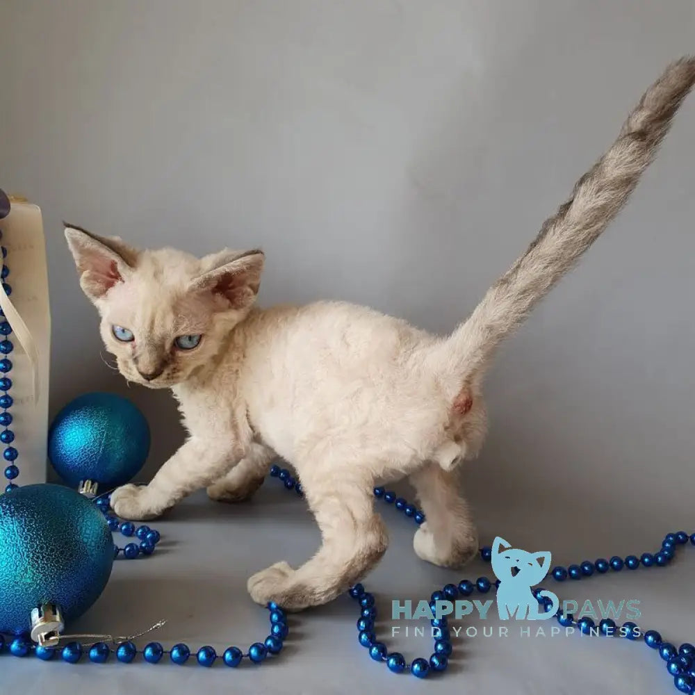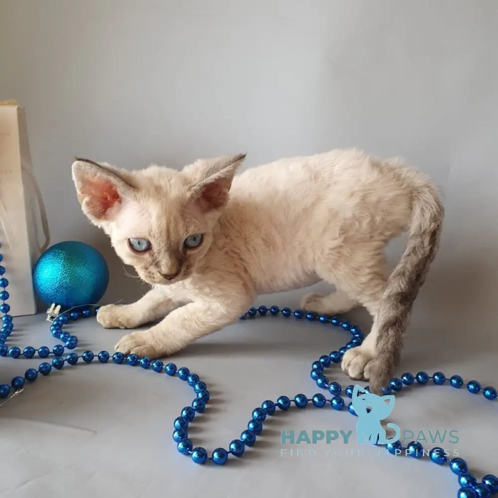Meet Seva, an exceptional Devon Rex male showcasing the striking black tabby pointed pattern. This breed is renowned for its distinctive elfin features, including oversized ears, prominent cheekbones, and a slender, muscular frame. Devon Rex cats possess a uniquely soft, wavy coat that requires minimal grooming while providing a luxuriously silky texture. Seva combines the breed's characteristic intelligence and playful temperament with his sophisticated coloring. These cats thrive on human interaction and excel as devoted companions. His pointed markings add visual distinction to an already captivating breed. Ideal for experienced cat enthusiasts seeking an engaging, affectionate feline with striking aesthetics and an interactive personality.