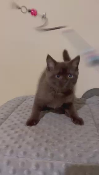 The Shery British Shorthair female in chocolate showcases the breed’s signature plush, dense coat and robust build, enhanced by a rich, warm chocolate hue. Known for their calm temperament and affectionate nature, these cats make excellent companions. Their sturdy physique and round features reflect the breed’s classic standards, while the chocolate color adds a unique elegance. Ideal for those seeking a gentle yet dignified feline, Shery combines beauty with a balanced personality, making her a distinguished addition to any home.