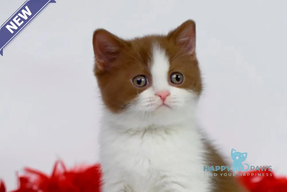 Simba is a handsome British Shorthair male with a warm cinnamon bicolour coat that makes him instantly eye-catching. His sturdy build and calm demeanor reflect the classic traits of the breed. Friendly and confident, he enjoys being near people and exploring his surroundings. Simba’s striking coloration and balanced temperament make him a delightful companion.