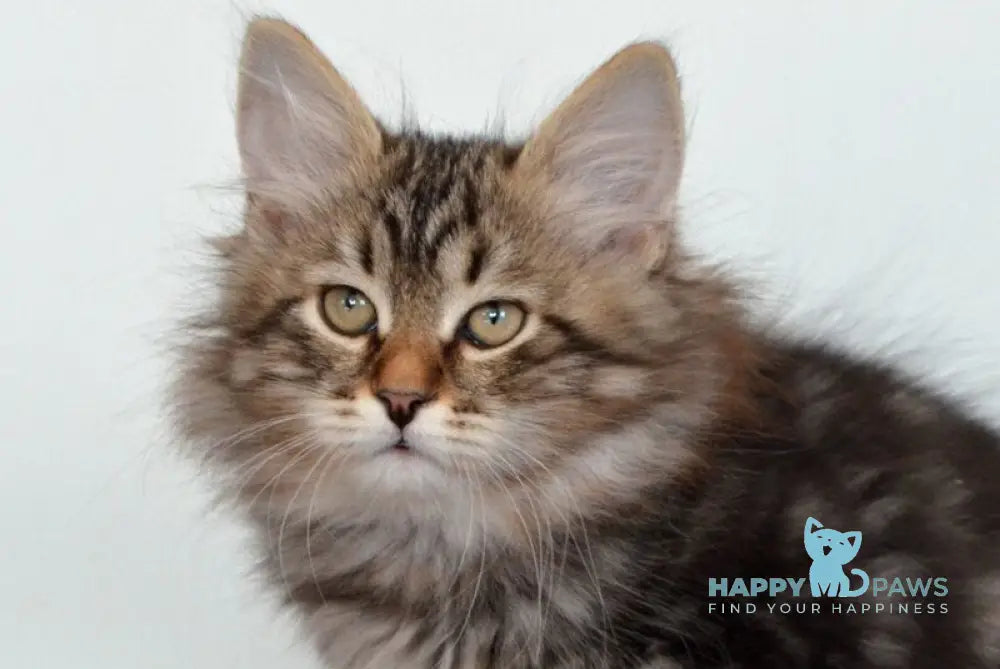 Simon is a male Siberian cat with a striking black tabby coat, known for his robust health and hypoallergenic qualities. This majestic breed combines strength and agility with a gentle temperament, making Simon an ideal companion for families and cat enthusiasts alike. His dense, water-resistant fur provides excellent protection in colder climates, while his intelligent and playful nature ensures engaging interaction. Simon’s well-balanced personality and impressive lineage make him a distinguished choice for those seeking both beauty and resilience in a feline friend.