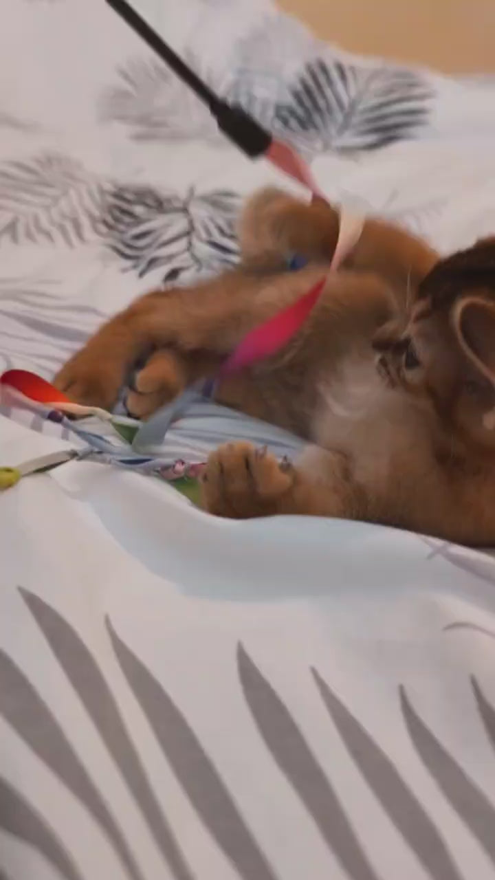 Sissy is a stunning ruddy Abyssinian female with the breed's signature ticked coat and elegant, slender build. Her warm, reddish-brown coloring showcases the distinctive banding pattern that defines this ancient breed. Known for their intelligence, curiosity, and affectionate nature, Abyssinians like Sissy make engaging companions. She displays the breed's characteristic alertness and graceful movements, combined with a playful yet gentle temperament. Ideal for experienced cat enthusiasts seeking an interactive, devoted feline companion.