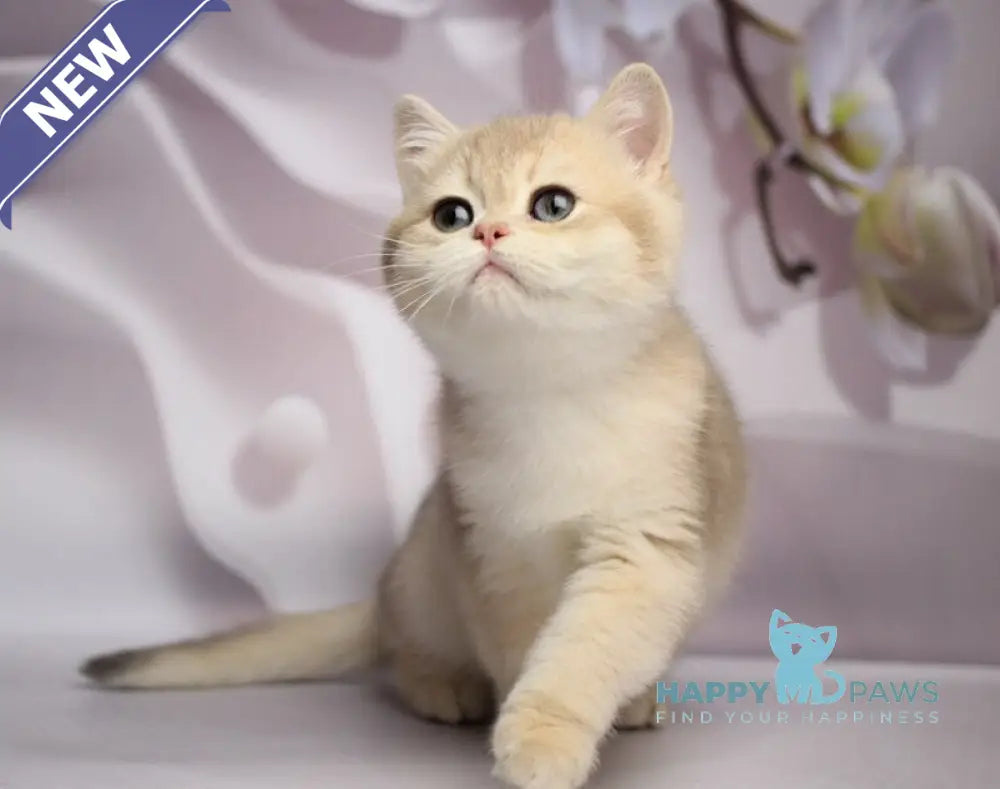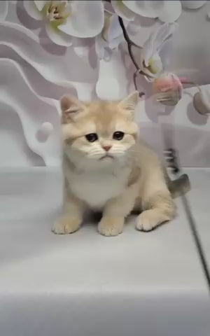 The Snikers British Shorthair male in blue golden chinchilla presents an exceptional example of the breed’s classic charm. Known for its dense, plush coat with subtle golden tipping, this cat combines striking coloration with the British Shorthair’s sturdy, muscular build. His calm and affectionate temperament makes him a rewarding companion while his luxurious coat demands regular grooming to maintain its soft, shimmering quality. Ideal for enthusiasts seeking a distinguished, low-maintenance feline with an elegant presence.