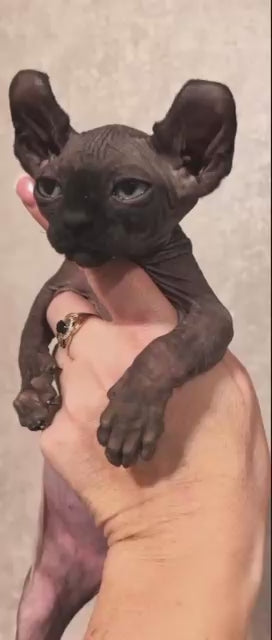 The Stitch Elf male kitten in black features a sleek, dark coat that highlights its distinctive, playful personality. Ideal for those seeking a unique and charming feline companion, this kitten blends affectionate behavior with an engaging presence. Its well-defined physical traits and attentive demeanor make it a perfect addition to experienced cat owners looking for a special breed with character.