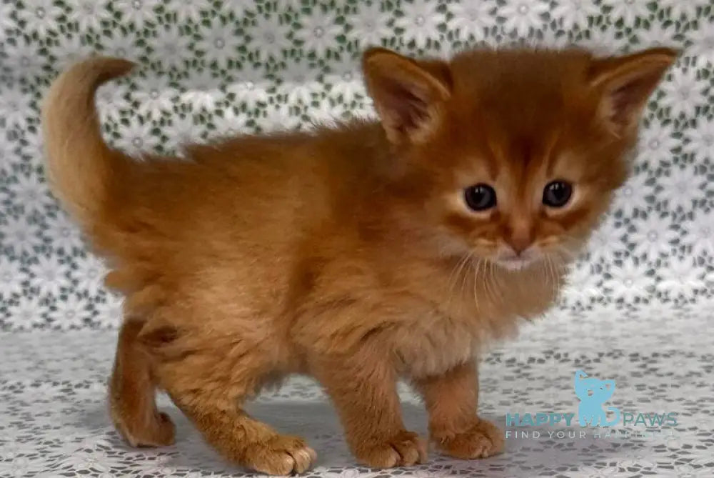 Meet Sunny, a stunning Somali female with a radiant sorrel coat that captures the warmth of her spirited personality. This breed is renowned for its intelligence, athleticism, and affectionate nature. Somalis are highly social cats that thrive on interactive play and human companionship, making them ideal for active households. Sunny's striking appearance, combined with her engaging temperament, promises a rewarding feline companion. Her sorrel coloring—a warm, reddish-brown hue—is particularly prized in the breed. Whether you're seeking a devoted playmate or an elegant addition to your home, Sunny embodies the best qualities of this remarkable breed.