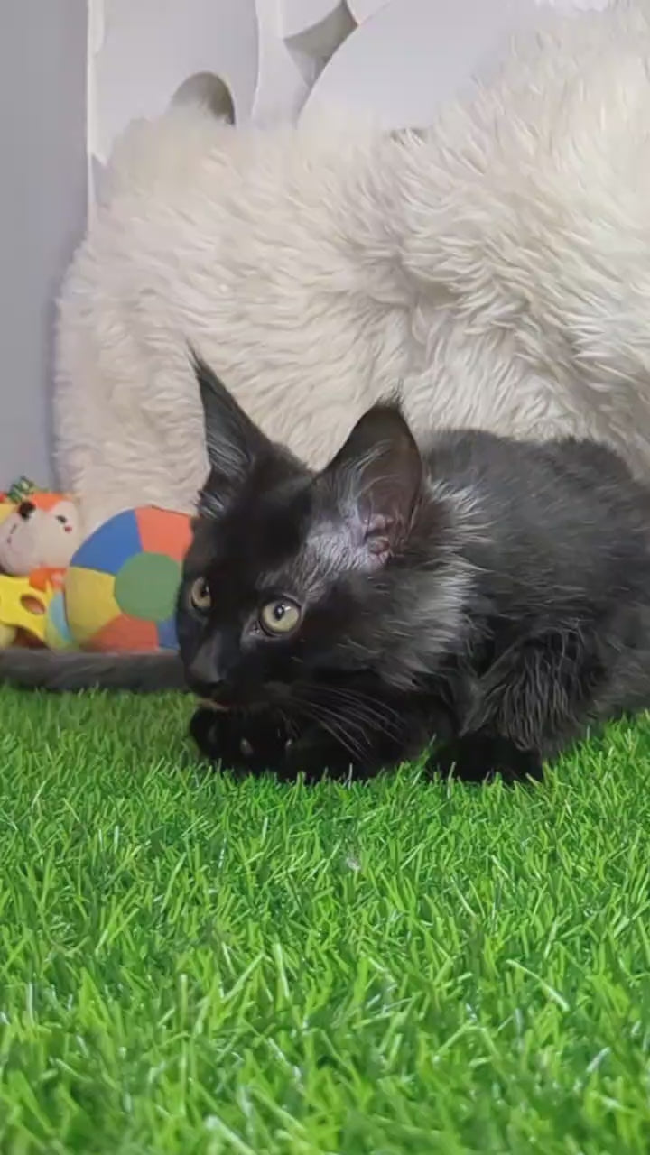 Meet Tesla, a stunning black silver Maine Coon female with the majestic presence this breed is known for. Maine Coons are one of the largest domestic cat breeds, renowned for their gentle temperament, intelligence, and affectionate nature. Tesla combines striking silver-tipped black fur with the characteristic tufted ears and bushy tail that make Maine Coons instantly recognizable. These cats are excellent companions for families and adapt well to various living environments. Tesla is ready to bring elegance, playfulness, and loyal companionship to her new home.
