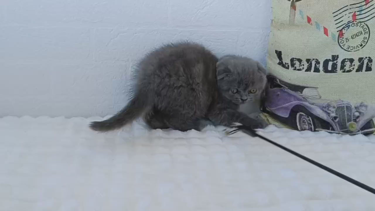Tiana is a female Scottish Fold cat with a distinctive blue coat, known for her gentle temperament and iconic folded ears. As a breed, Scottish Folds are appreciated for their affectionate nature and adaptability to various home environments, making Tiana an excellent companion for families or individuals seeking a calm and engaging pet. Her unique appearance and calm demeanor highlight the breed's characteristic charm and companionship qualities.