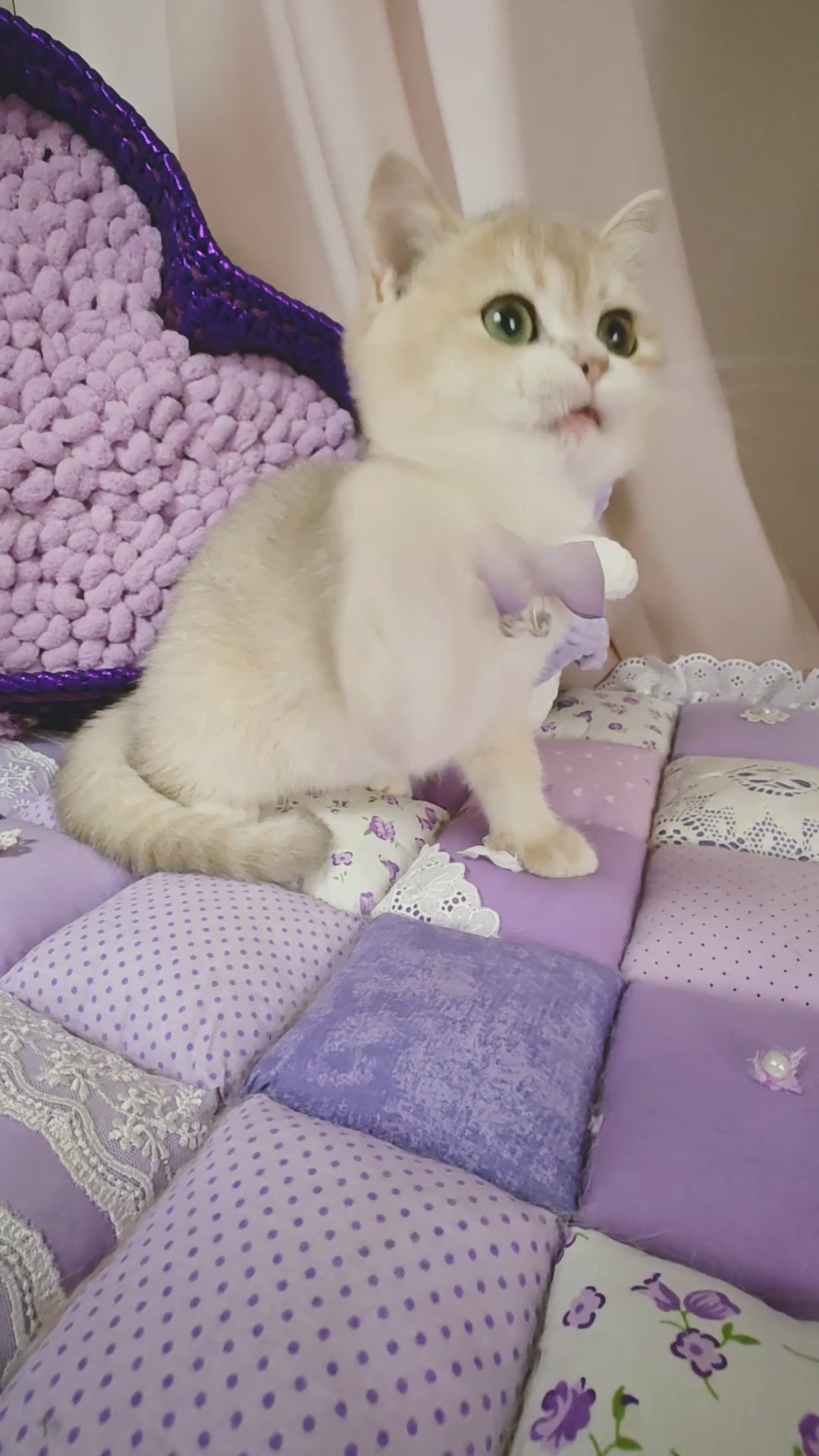 Timberlake is a male British Shorthair distinguished by his rare lilac golden chinchilla coat, which offers a delicate blend of soft lilac tones with a shimmering golden overlay. This breed’s hallmark dense, plush fur and sturdy build complement his refined coloration. Timberlake embodies the British Shorthair’s calm temperament and dignified presence, making him an exceptional choice for connoisseurs seeking both elegance and a loyal companion.