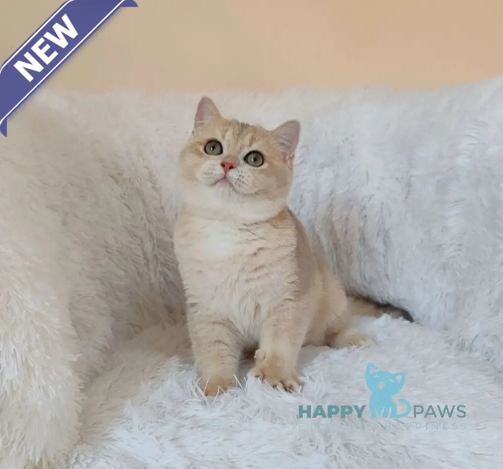 Trian is a British Shorthair male with a stunning blue golden chinchilla coat that shimmers with soft golden highlights over a silvery-blue base. His round, amber eyes and broad, gentle face give him a calm and dignified expression. Affectionate yet composed, he enjoys both quiet lounging and gentle play. Trian’s striking coat and steady temperament make him a distinguished example of the British Shorthair breed.