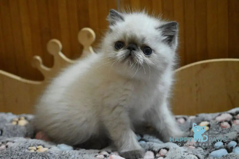 Udo, an Exotic male with striking blue pointed markings, combines the plush charm of the Exotic breed with a captivating color pattern. His dense, soft coat and distinctive blue points highlight his refined features, making him an elegant and unique companion. Ideal for enthusiasts seeking a blend of classic Exotic traits and the allure of blue pointed coloration, Udo offers both beauty and personality in one remarkable feline.