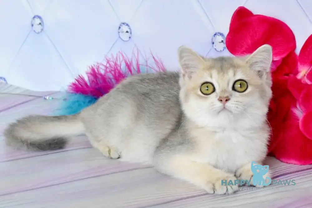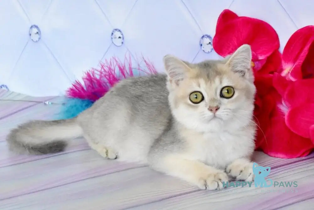 The Ulies British Shorthair male in blue golden shaded showcases the breed’s signature round face and dense, plush coat with a unique blend of blue and golden hues. This color combination highlights the breed’s muscular, compact build while offering a luxurious appearance. Known for their calm and affectionate temperament, these cats make excellent companions, pairing striking looks with a gentle, easygoing nature. Ideal for those seeking a distinguished pet with both beauty and balanced personality.