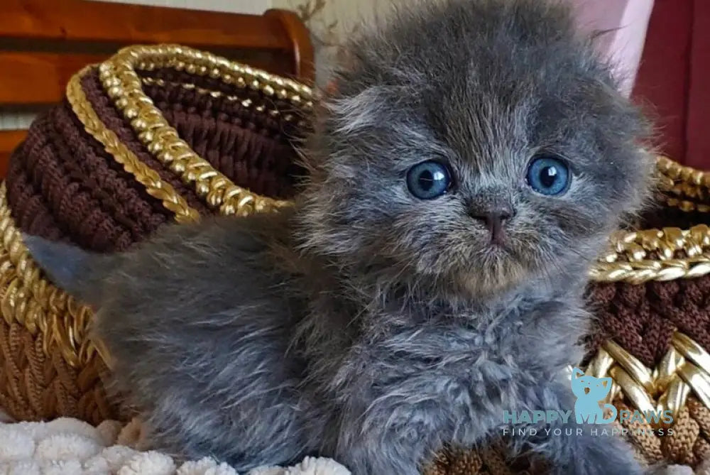 The Umik Scottish Fold male in blue is a distinguished cat breed known for its unique folded ears and plush blue coat. This breed combines a calm temperament with curiosity, making it a wonderful companion. Its distinctive ear shape is due to a natural genetic mutation, requiring mindful care to ensure ear health. Ideal for households seeking a gentle yet engaging feline, the Umik Scottish Fold's striking appearance and balanced personality make it a standout choice for experienced cat enthusiasts.