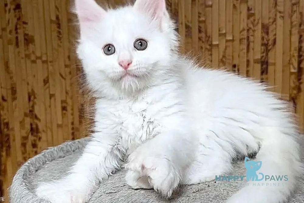 The Umka Maine Coon male in white offers the distinguished characteristics of this majestic breed, known for its large size, tufted ears, and luxurious fur. With a calm and sociable temperament, Umka is ideal for families seeking a gentle yet playful companion. His white coat requires regular grooming to maintain its pristine condition, highlighting the breed’s impressive physical structure and expressive eyes. Perfect for those who appreciate both beauty and a steady, affectionate personality.
