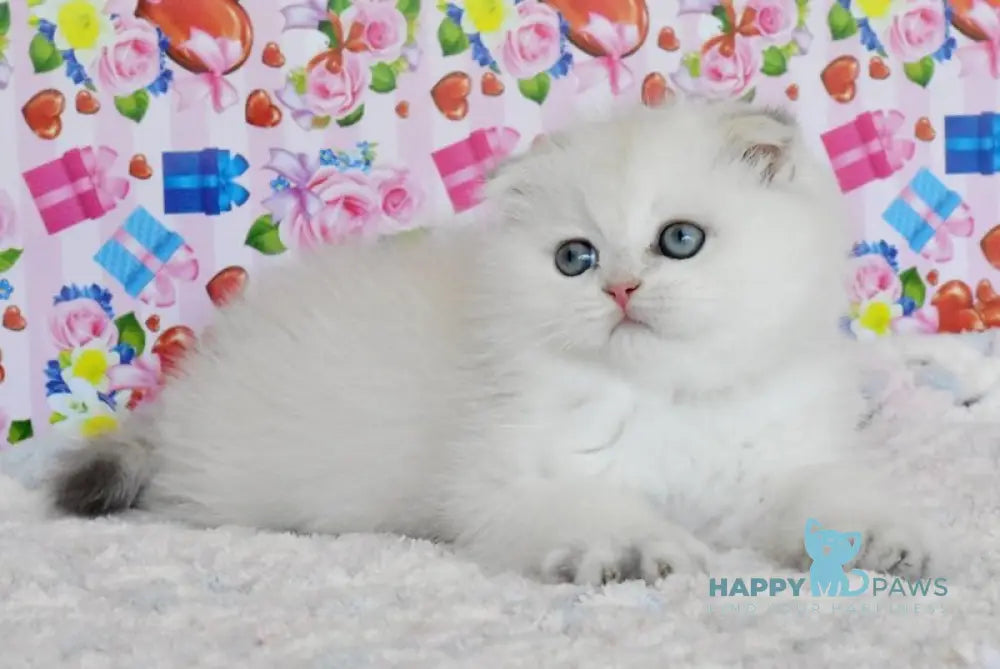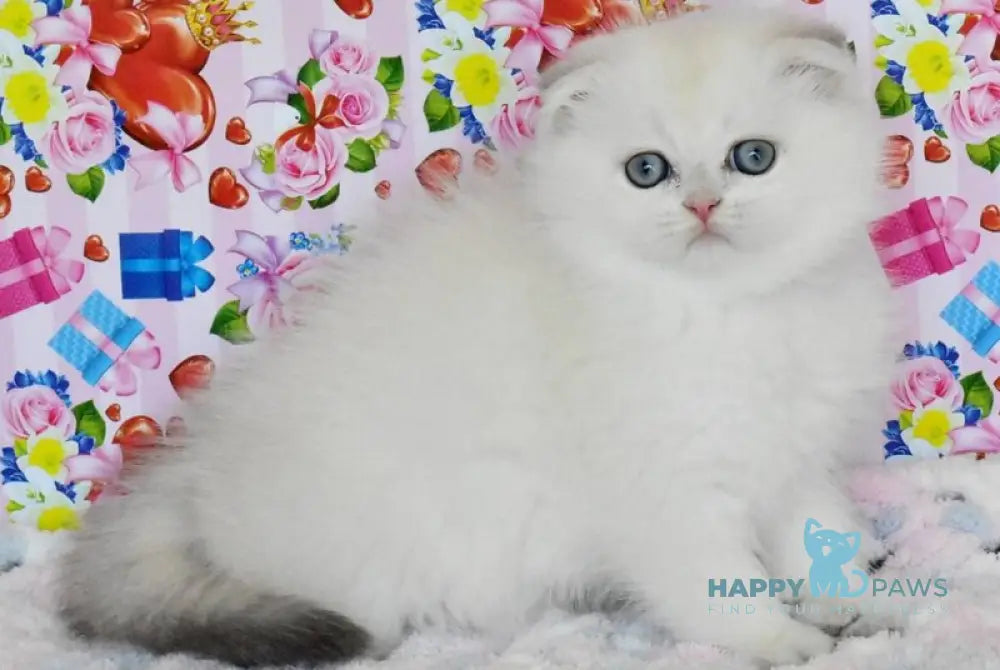 Umka Scottish Fold, male features the breed's signature folded ears and captivating blue golden shaded coat, combining unique genetics with elegant coloring. Known for their calm temperament and affectionate nature, Scottish Folds like Umka make ideal companions for both quiet homes and families seeking a gentle, intelligent pet. This male exhibits strong breed characteristics, including a rounded head and expressive eyes, highlighting careful, expert breeding standards. Perfect for enthusiasts who appreciate distinctive beauty and a loving, adaptable personality in a feline companion.