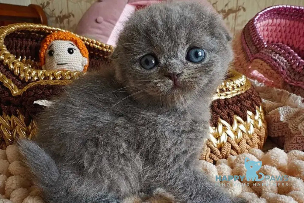 The Unik Scottish Fold male cat showcases a striking blue coat paired with its signature folded ears, a hallmark of the breed. Praised for their calm demeanor and affectionate nature, these cats are excellent companions. Their sturdy build supports good health, while their expressive eyes and distinctive ear shape add to their unique appeal. Perfect for those seeking a gentle yet engaging feline, the Unik Scottish Fold male combines elegance with a soothing presence.