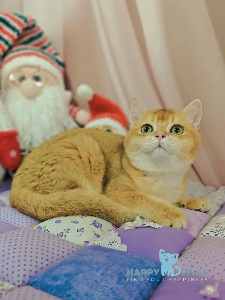 Valet is an exceptional British Shorthair male showcasing the rare and coveted chocolate golden shaded coat pattern. This striking coloration features warm chocolate tones beautifully blended with golden highlights, creating a luxurious appearance that sets him apart. As a pedigreed British Shorthair, Valet embodies the breed's hallmark traits: a robust, muscular build, round face with full cheeks, and calm, affectionate temperament. His dense, plush coat requires regular grooming to maintain its lustrous finish. Ideal for families seeking a gentle, loyal companion with distinctive aesthetics and a stable, easygoing personality.