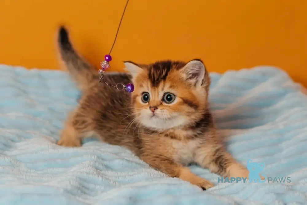 The Varna Scottish Straight female showcases a striking black golden ticked tabby coat, combining the breed’s signature plush texture with elegant, warm coloration. Known for their calm temperament and sociable nature, Scottish Straights offer a perfect companion with a balanced personality. This female exhibits strong physical traits synonymous with the breed, ensuring both beauty and excellent health. Ideal for those seeking a refined and affectionate feline, she embodies the breed’s resilient yet gentle character.