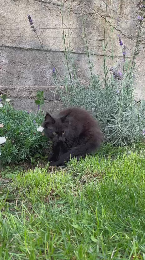 Venom is a striking black Maine Coon male, known for his robust build and luxurious, dense coat. This breed's hallmark tufted ears and bushy tail complement his impressive size and gentle temperament. Perfect for those seeking a majestic yet affectionate companion, Venom combines the characteristic intelligence and sociability of Maine Coons with an elegant black coat that adds to his distinguished presence.