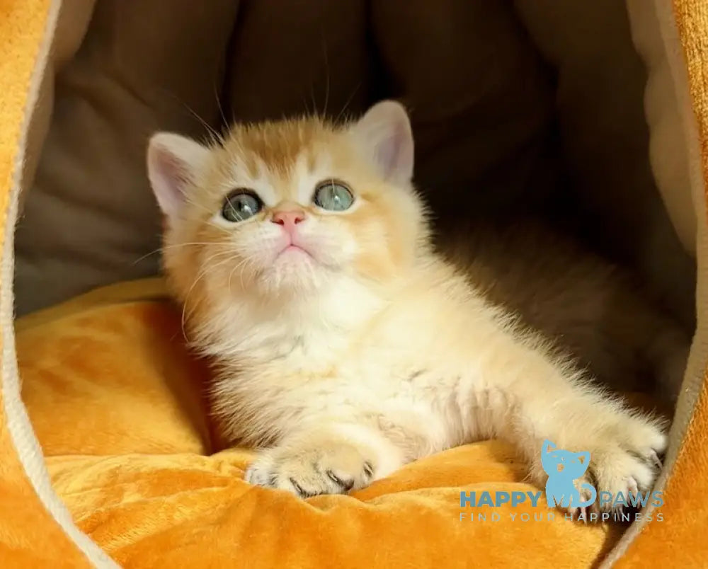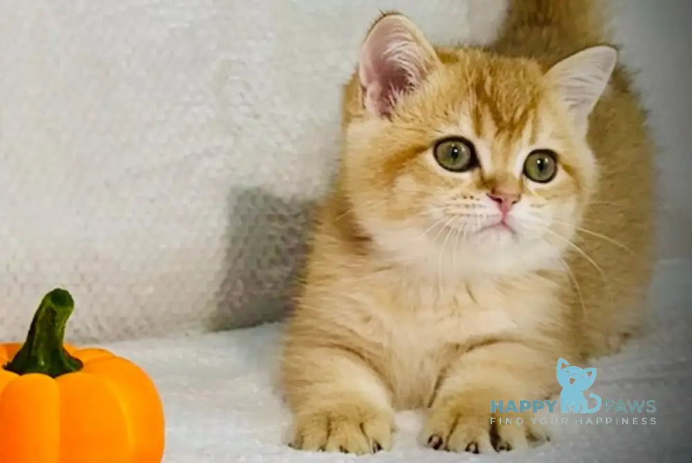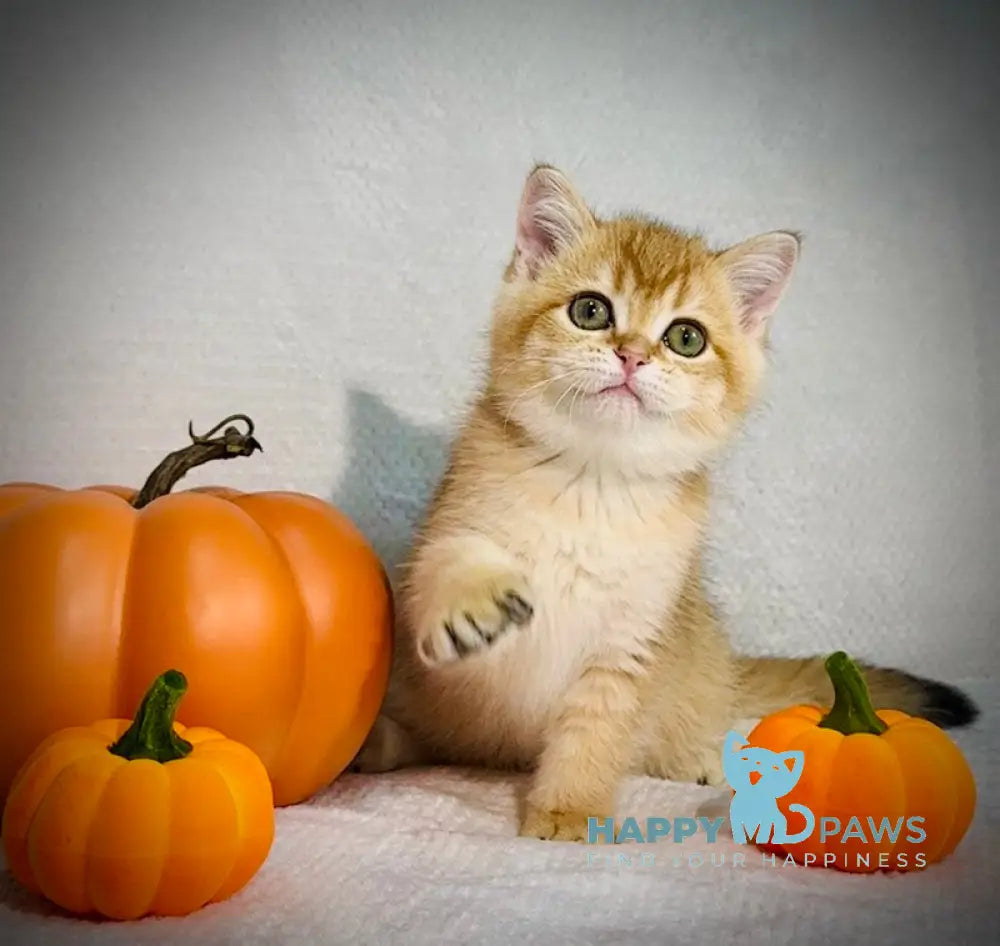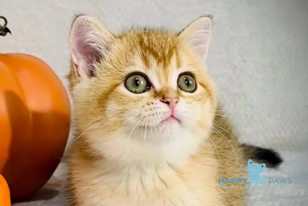 The Versace British Shorthair male in black golden chinchilla boasts a striking coat characterized by a rich blend of deep black and shimmering golden tones, creating a luxurious, finely tipped appearance. This breed is renowned for its muscular build and calm, affectionate temperament, making it an excellent companion. The plush, dense fur enhances the cat’s regal presence, while its steady nature ensures it thrives in both quiet and dynamic home environments. Ideal for aficionados seeking a distinguished and gentle feline companion.