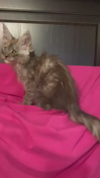 Meet Via Virginia, an exquisite black silver Maine Coon female. This majestic breed exemplifies the Maine Coon's renowned characteristics: substantial size, muscular build, and striking appearance. Her luxurious black silver coat displays the breed's signature dense, water-resistant fur with elegant tipping that creates depth and dimension. Maine Coons are celebrated for their intelligent, affectionate temperament and adaptability to family life. Via Virginia combines the breed's impressive physical presence with a gentle, sociable nature, making her an exceptional choice for those seeking a premium feline companion with distinctive beauty and engaging personality.