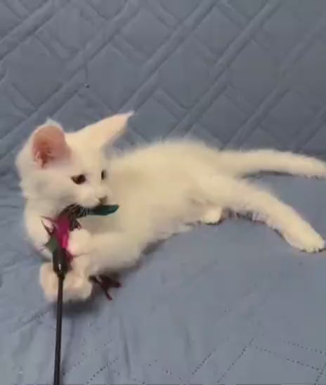 Wasabi is a stunning white Maine Coon female, renowned for her impressive size, luxurious long coat, and gentle temperament. Maine Coons are celebrated for their intelligence, playful nature, and affectionate personalities, making them exceptional companions for families and experienced cat enthusiasts alike. Wasabi's striking appearance and breed characteristics promise a majestic presence in any home. These cats thrive with interactive play, spacious environments, and regular grooming to maintain their beautiful coats. Ideal for those seeking a loyal, engaging feline companion with distinctive charm and presence.