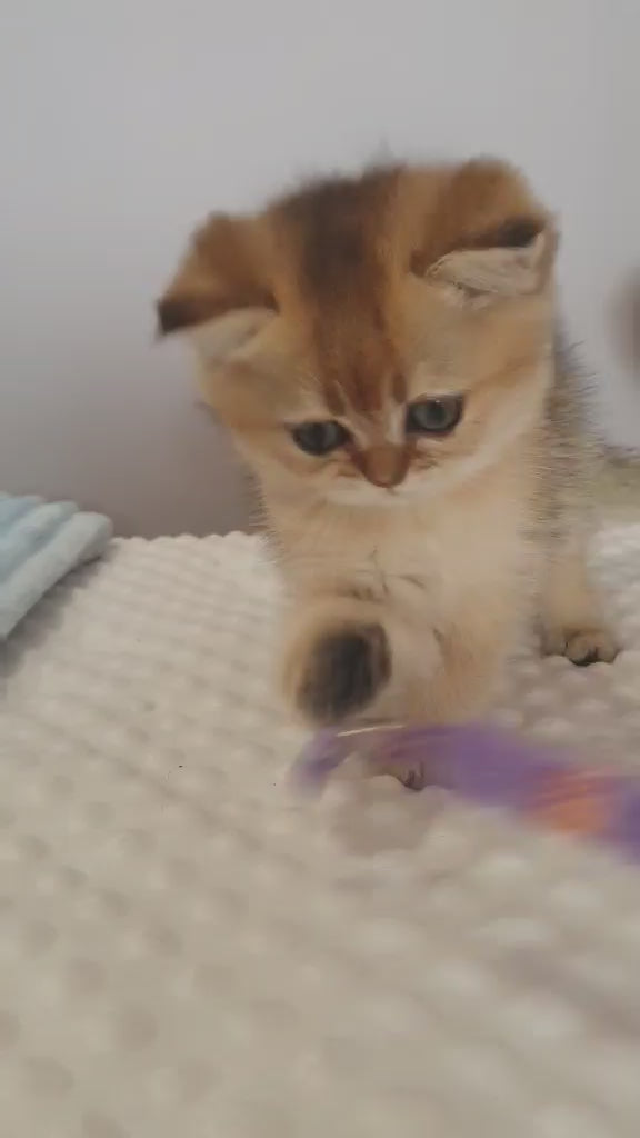 Whitney Scottish Straight female, black golden ticked tabby