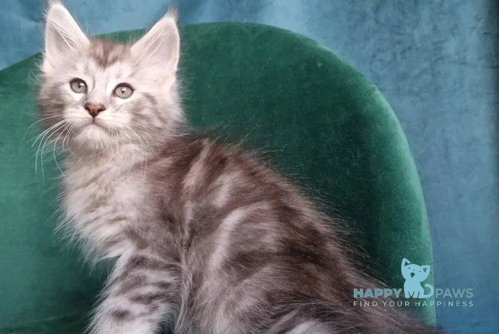 Wiliam is a striking male Maine Coon with a classic black tabby coat, known for his impressive size and tufted ears. This breed combines gentle temperament with strong intelligence, making him an excellent companion for families and experienced cat enthusiasts. His thick, water-resistant fur provides protection in various climates, while his playful yet calm nature suits both lively and serene homes. Wiliam exemplifies the Maine Coon’s robust health and sociability, promising a loyal and engaging feline presence.