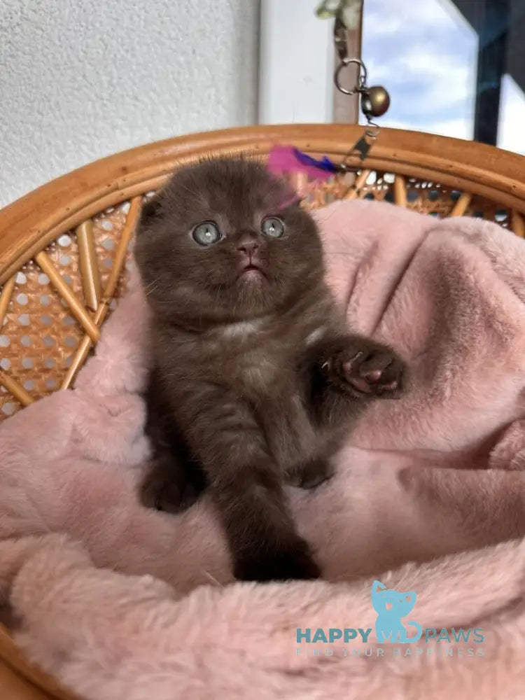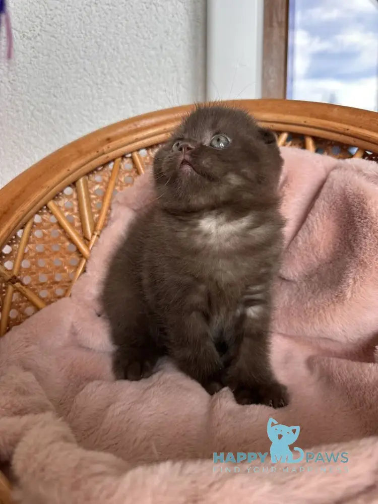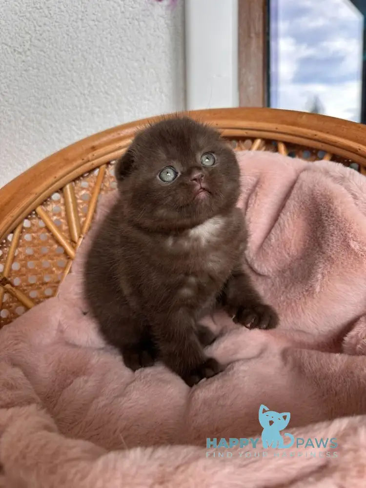 Winter is a distinguished Scottish Fold male with a rich chocolate coat that accentuates the breed's characteristic folded ears and expressive, rounded face. His deep, luxurious coloring creates a striking visual presence. Scottish Fold males are celebrated for their confident yet gentle demeanor, playful curiosity, and unwavering loyalty to their families. Winter combines sophisticated aesthetics with the breed's reputation for being adaptable, engaging, and genuinely affectionate companions. His warm personality and elegant chocolate coloring make him an exceptional choice for households seeking an intelligent, interactive feline with a calm disposition and remarkable capacity for meaningful human connection.