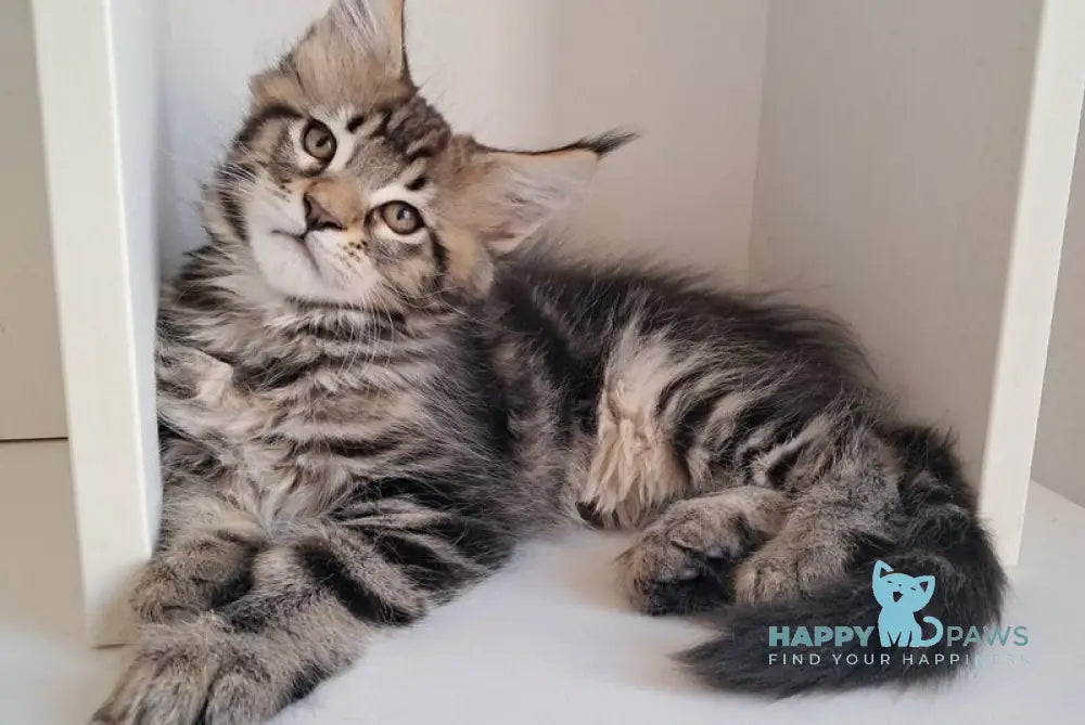 The X-Archi Maine Coon male black tabby embodies the breed’s signature robust build and striking coat pattern. With a thick, plush black tabby fur, this male Maine Coon offers both an impressive appearance and a gentle temperament, typical of the breed. Known for their intelligence and sociable nature, Maine Coons make excellent companions for cat enthusiasts seeking a majestic yet affectionate pet. The black tabby pattern highlights the breed's classic rugged elegance and enhances its dignified presence in any home.