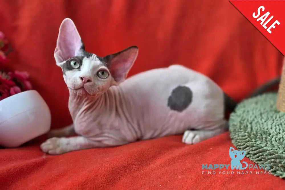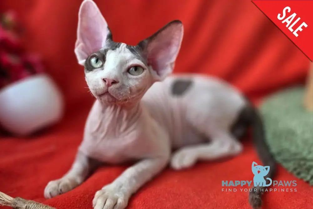 The Xcaret Devon Rex male in chocolate van pattern showcases the breed’s signature slender, muscular build and distinctive curly coat with soft waves. This expert-selected cat combines the chocolate and white hues in a striking van marking, emphasizing its elegant and playful nature. Known for its affectionate temperament and high intelligence, this Devon Rex is an ideal companion for those seeking a unique, engaging feline with a hypoallergenic coat. Its lively personality and distinctive appearance make it a remarkable addition to any knowledgeable cat enthusiast’s home.