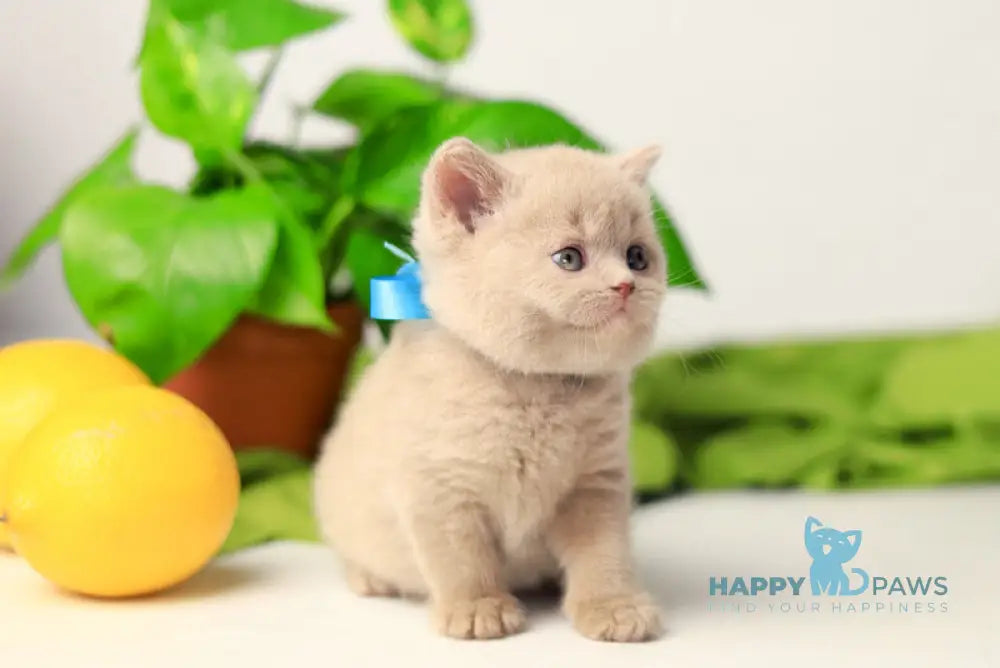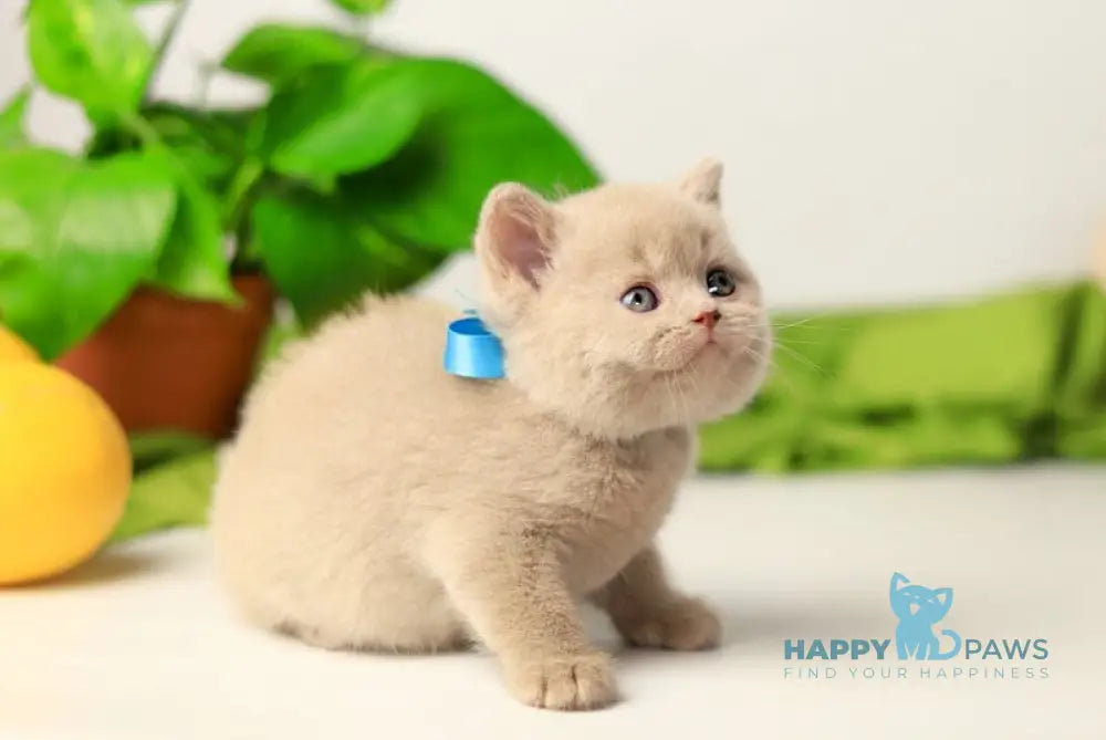 Yaromir is a distinguished British Shorthair male showcasing the rare and elegant fawn coat. Known for their robust build and plush, dense fur, British Shorthairs like Yaromir combine a calm temperament with striking appearance. This male cat’s unique coloration enhances his classic round features and expressive amber eyes, making him a remarkable example of the breed’s solid structure and balanced personality. Ideal for enthusiasts seeking a poised, affectionate companion with an expert pedigree.