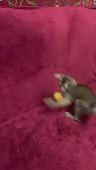 The Yasson Abyssinian male in striking black showcases the breed's distinctive ticked coat pattern and elegant, muscular build. Known for their intelligence and playful nature, Abyssinians are highly active and social companions that thrive on interaction and mental stimulation. This male exhibits the breed's characteristic alert expression and graceful movement. Perfect for experienced cat owners seeking an engaging, affectionate pet with a vibrant personality.