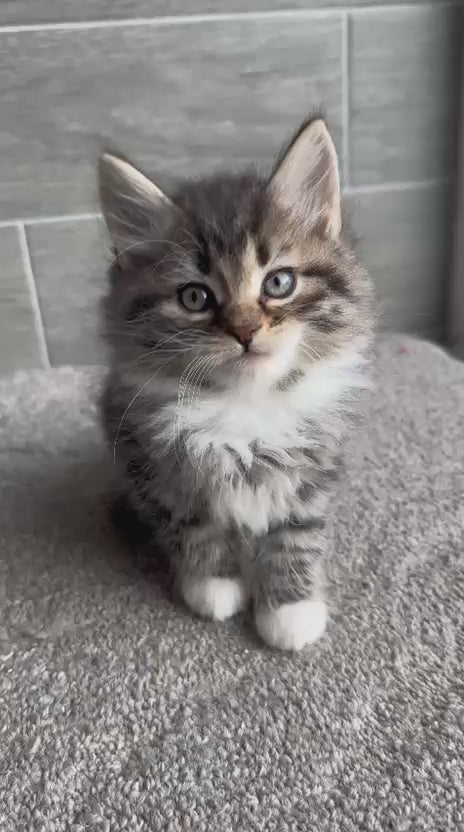 Yunior is a striking Siberian male cat featuring a distinctive black bicolour spotted tabby pattern. This breed is renowned for its robust build, luxurious semi-long coat, and intelligent temperament. Siberians are known for their exceptional adaptability, making them excellent companions in various living environments. Yunior combines the breed's characteristic strength and grace with a captivating spotted tabby marking that sets him apart. These cats are typically affectionate, playful, and form strong bonds with their families while maintaining an independent spirit. Ideal for those seeking a beautiful, well-balanced feline companion with genuine personality and charm.