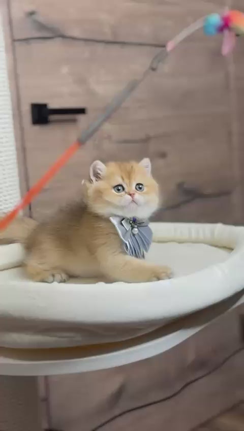 Zachary is a stunning British Shorthair male showcasing the coveted black golden shaded coat pattern. This breed is renowned for its robust build, round face, and dense double coat that feels plush to the touch. Black golden shaded coloring displays darker tipping that gradually transitions to a lighter golden undercoat, creating exceptional depth and dimension. British Shorthairs are known for their calm, easygoing temperament and adaptability to various living environments. Zachary combines the breed's characteristic intelligence and gentle nature with striking aesthetic appeal, making him an excellent choice for those seeking a loyal, low-maintenance companion with distinctive beauty and a stable, affectionate personality.