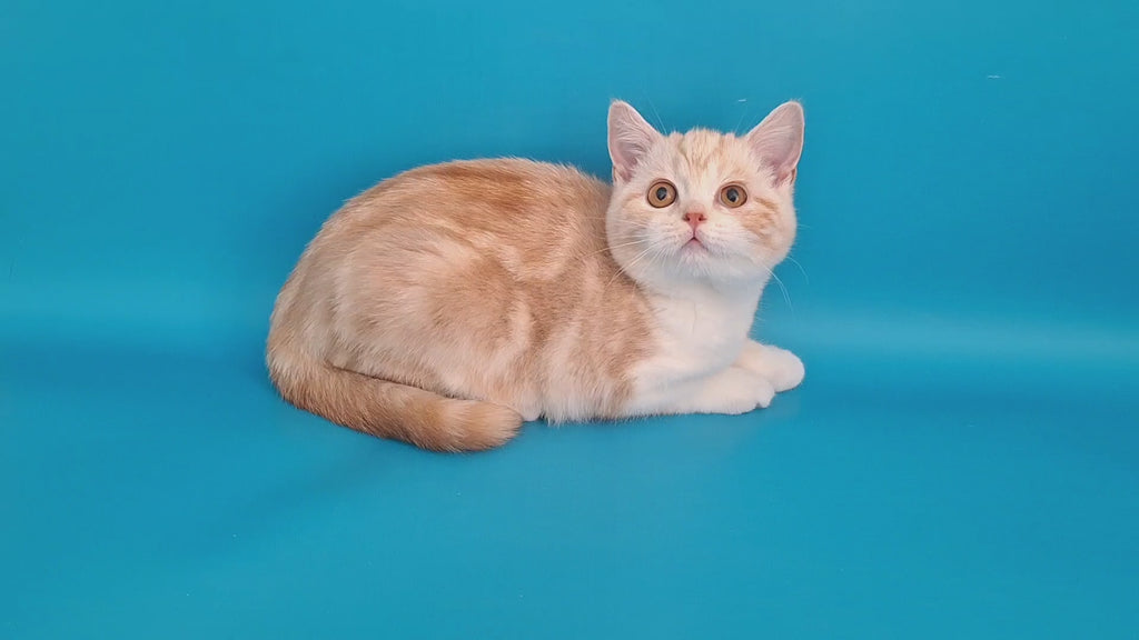 Zander is a stunning Scottish Straight male with a captivating red silver tabby bicolour coat. This elegant feline features the breed's characteristic straight ears and well-rounded head, combined with striking tabby markings and silvery undertones. Known for their calm, affectionate temperament, Scottish Straights make wonderful companions for families and individuals alike. Zander's unique coloring and gentle nature make him a truly special addition to any home. Perfect for those seeking a loyal, loving pet with distinctive beauty.