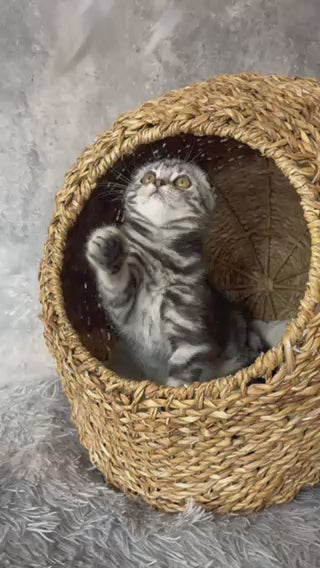 Meet Zeus, a stunning Scottish Fold male with a luxurious black silver tabby coat. This breed is renowned for its distinctive folded ears, which give Zeus an endearing, owl-like expression. Scottish Folds are known for their gentle, affectionate temperament and adaptability to various living environments. Zeus's striking tabby markings showcase the breed's natural beauty. As an expert-level companion, he represents the finest qualities of the Scottish Fold lineage—intelligence, loyalty, and a calm demeanor that makes him an ideal addition to discerning cat enthusiasts seeking a premium feline companion.